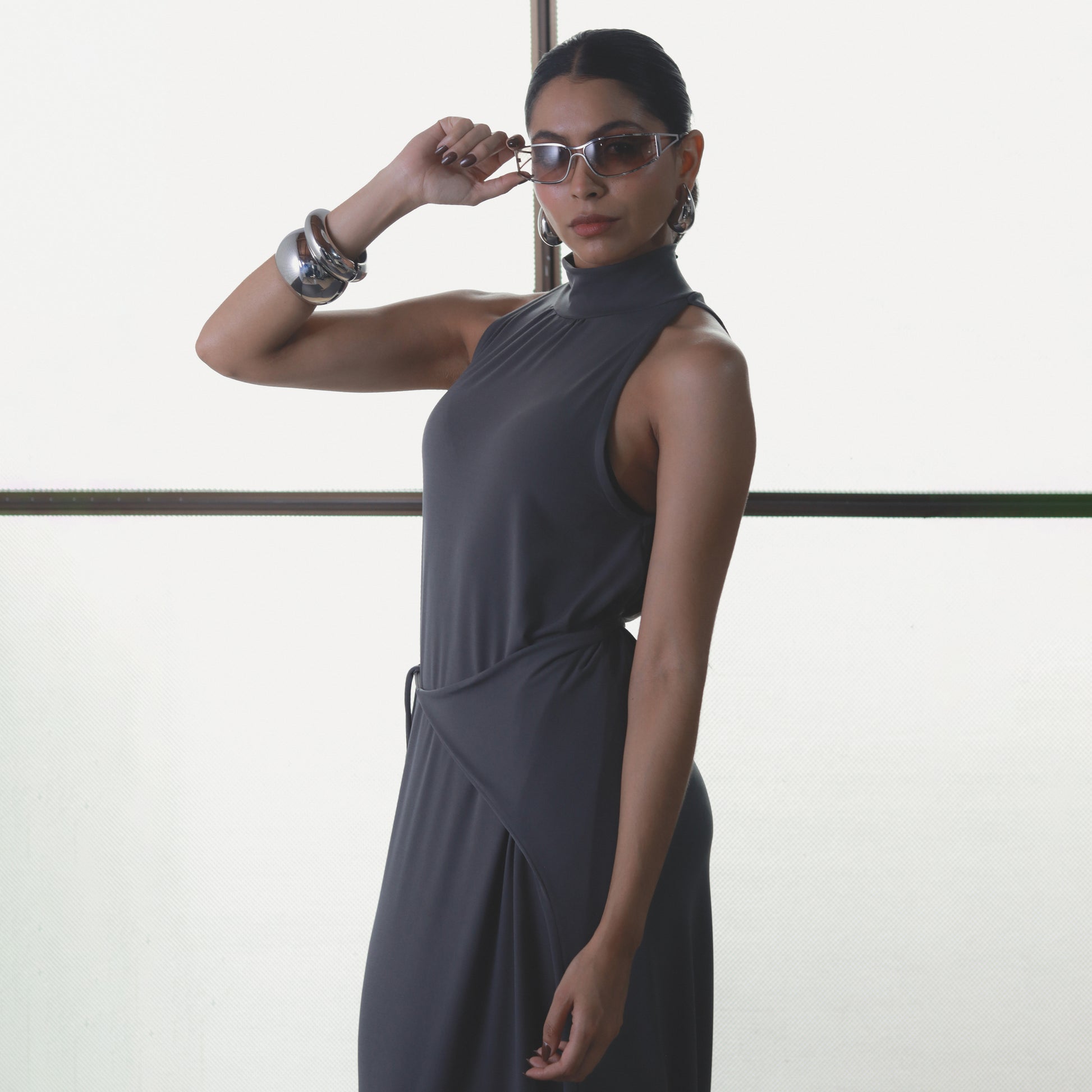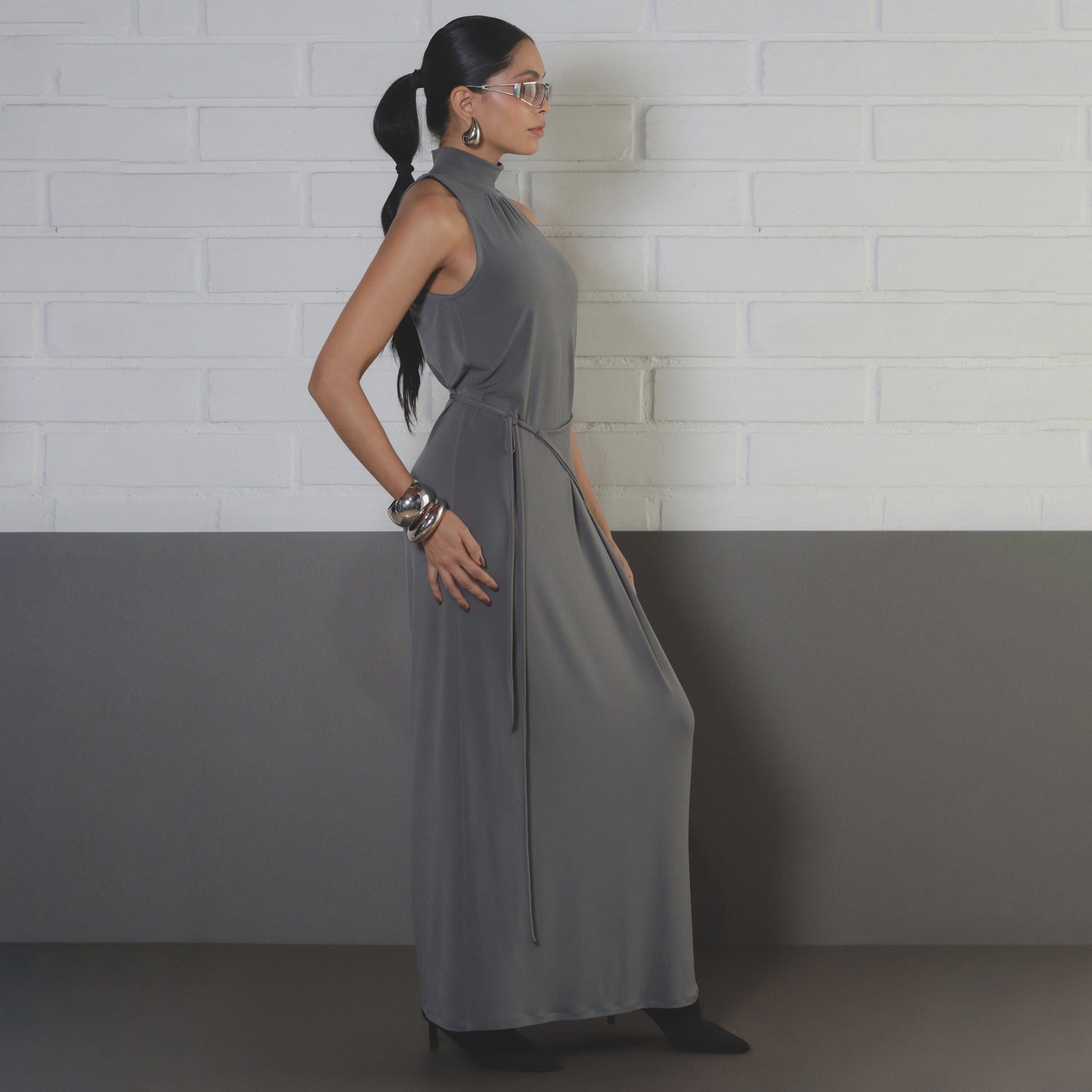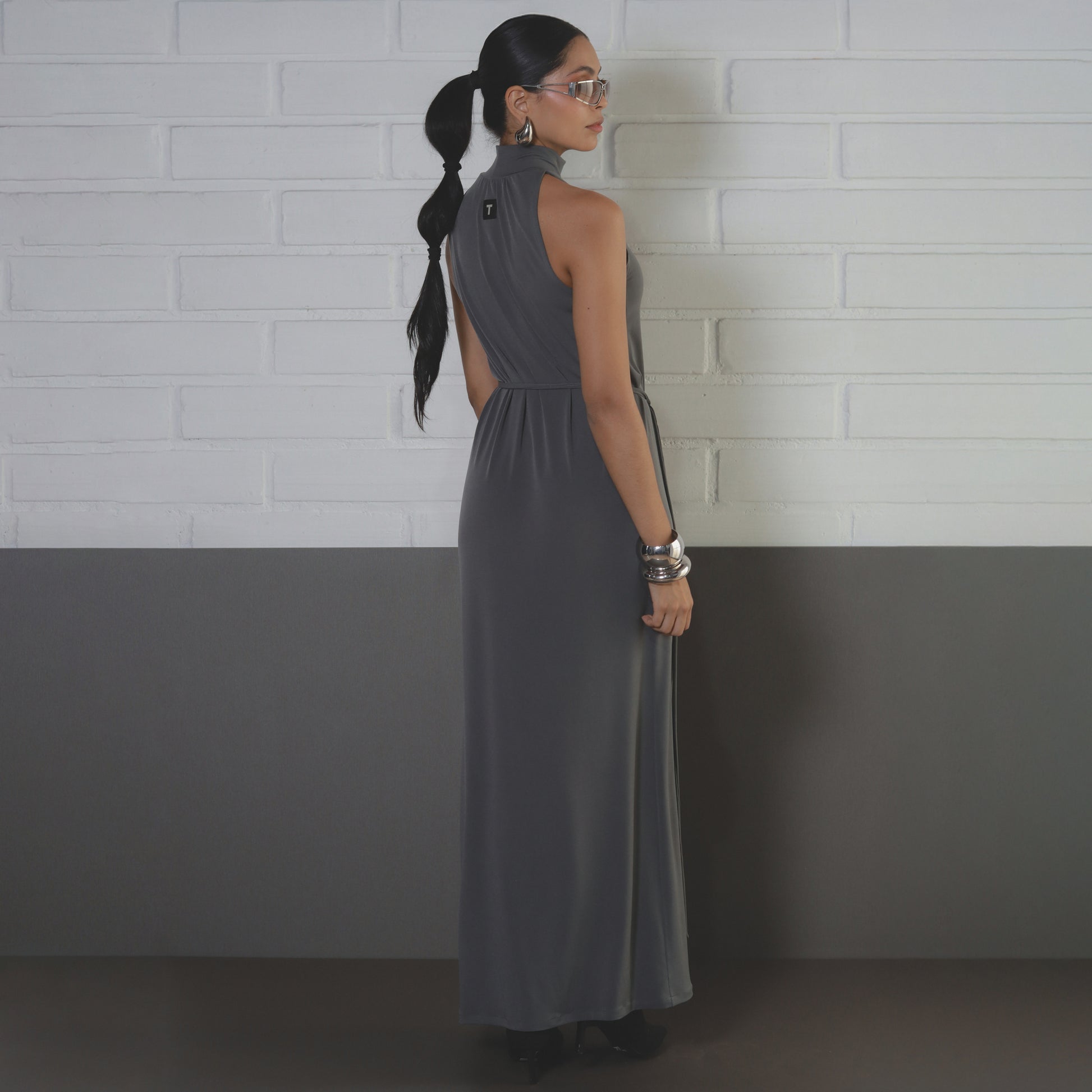 Vestido con un toque de elegancia, hecho en tela lycra que aporta suavidad, elongación y una comodidad que acompaña el movimiento del cuerpo. Su cuello alto suma un aire sofisticado, equilibrando el diseño sin mangas con una estética única. El ajuste en la cintura, graduable y funcional, realza la silueta de forma natural, creando una caída fluida que estiliza la figura y aporta versatilidad al uso; este detalle se convierte en el elemento protagonista del diseño, realzando el vestido y haciéndolo único y diferenciador. Una pieza atemporal y versátil, pensada para destacar la forma, el confort y la fuerza del diseño en una sola prenda.