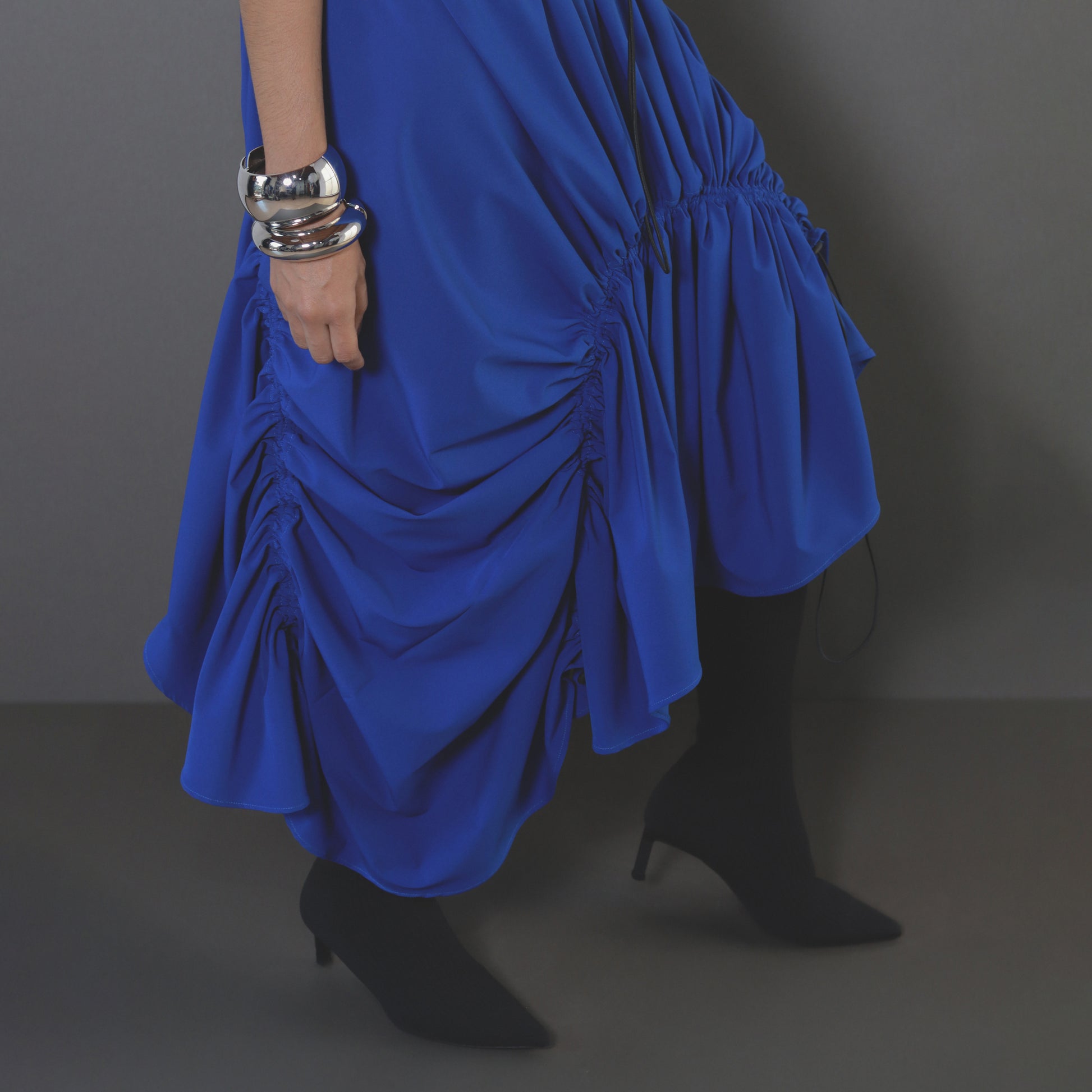 Falda de silueta fluida, diseñada para transformar su forma según tu estilo gracias a sus recogidos graduables que permiten ajustar el volumen y crear textura a través de pliegues asimétricos. Su pretina con elástico garantiza comodidad y un calce adaptable, mientras que los sistemas de ajuste aportan versatilidad para llevarla más estructurada o más suelta según la ocasión. Con movimiento, personalidad y un diseño funcional, esta falda es una pieza protagonista que equilibra diseño y confort, ideal para looks con actitud y expresión propia.
